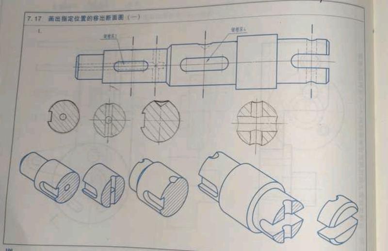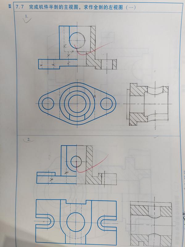 圆锥和圆柱为回转体,应补齐外圆,图四中不存在内内相贯,绘图阴影方向应与题中阴影方向相同 ,断面图轴线应与原图轴线对齐