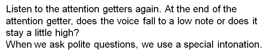 3. Listen to the attention getters and repeat them. Make your voice rise at the end.