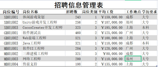 制作招聘信息管理表