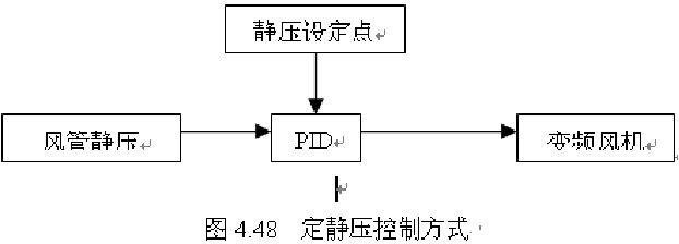 当各VAV末端风门开度随控制区域负荷的变化而改变时,如果送风机运行频率不作相应调整,风管静压就会产生波动