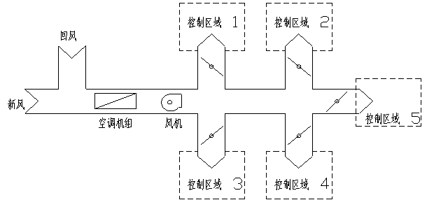 根据控制区域的热负荷,通过调节风门的开启比例控制末端的送风量