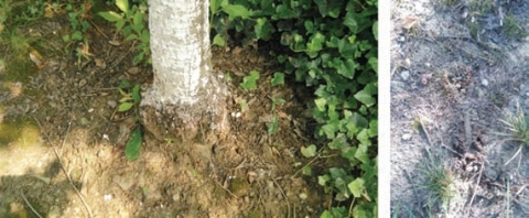根癌在樱属植物中常见,是一种细菌性病害,在根茎部、裸露根系常形成瘤状结块(图2-29),导致树势衰弱甚至死亡。根癌常被人们忽视而疏于防治的原因是,大多数人认为这样的樱花树已进入衰老期。其防治措施主要在于保持樱花根际土壤疏松不板结,排水通畅,增施有机肥。根部病害部分应刮除后涂抹药剂处理。