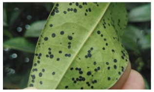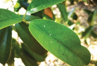2015年之前,桂花上很少见粉虱危害。2018年苏州工业园区范围内,桂花叶背布满粉虱伪蛹(图2-41),叶面黑点清晰可见(图2-42),局部严重,成虫未见。2019年粉虱大爆发,成虫随处可见,甚至一张叶片多达十多头(图2-43)。查阅资料并经专家初步判定,此类害虫为梣粉虱,是一种危害严重的入侵生物,偏好木樨属、蔷薇属植物。鉴于此虫已全范围严重危害,需要有科研机构对其生活史、危害情况及防治措施进行更多的关注。