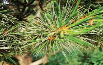 日本单蜕盾蚧危害五针松针叶,虫体白色,非常细小(图2-139),其密集危害常引起五针松很快衰弱,整株枯黄。