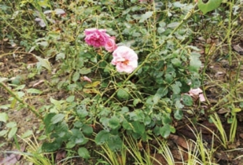 图2-184 三节叶蜂在月季嫩茎产卵及孵化裂开