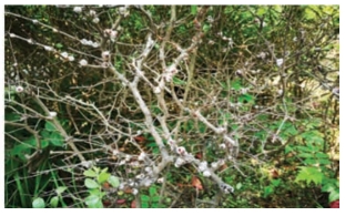 危害金叶女贞的有害生物还有很多,如木蠹蛾(图2-204)、白蜡蚧(图2-205、图2-206)、菟丝子(图2-207)、霜天蛾(图2-208)、叶蜂(图2-209)、尺蛾(图2-210)、袋蛾(图2-211)等。最好在危害初期就能够发现,一旦发现有了危害,必须及时采取措施处置,不致出现大面积危害。