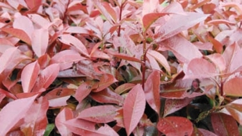 红叶石楠观赏性体现在新梢嫩叶上,而这个部位也属于蚜虫刺吸危害严重的部位。红叶石楠早春芽萌动早,因气温低,所以蚜虫尚不活跃,在新梢部位虫量较小。随着气温逐渐升高,蚜虫开始密集危害,常导致红叶石楠新梢嫩叶严重扭曲变形,产生大量蜜露,叶面油光发亮(图2-228),失去观赏价值。