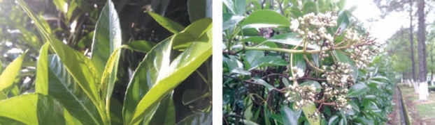 日本珊瑚树新梢嫩叶、花序均易受蚜虫严重危害(图2-244),由此常被诱发煤污,导致叶面、花序发黑。