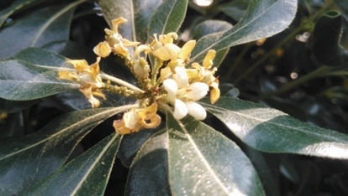 海桐在花期内受蚜虫危害严重,其叶片、花序扭曲,产生大量蜜露,油光发亮,并诱发严重煤污(图2-269)。