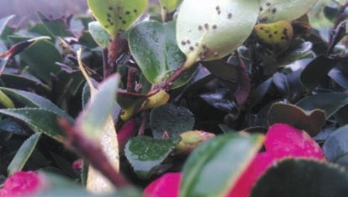 山茶二叉蚜一般集聚叶背、嫩梢处危害(图2-273)。