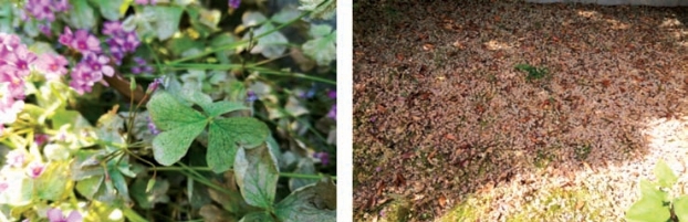 红花酢浆草岩螨是酢浆草最严重的危害,从5月上中旬即开始,危害酢浆草属植物,短时间内即引起茎叶枯败、倒伏、死亡(图2-306)。