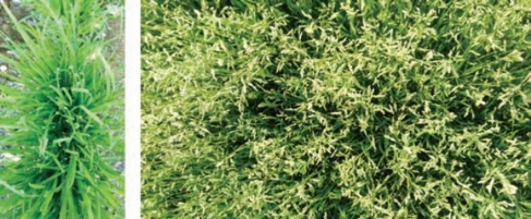 早熟禾(图3-1),禾本科越冬草,在同是禾本科的草坪内最常见,均匀混杂,尤其在地势低洼、土壤含水量高的地块发生量大,对草坪草的正常生长影响大。在秋冬季种子萌发时,其苗弱小低矮,在翌年春温度上升雨水增多时,其往往比草坪草返青更早、恢复生长更快,4—5月开始进入开花结籽期,种子量大,在完成生命周期后逐渐枯黄。