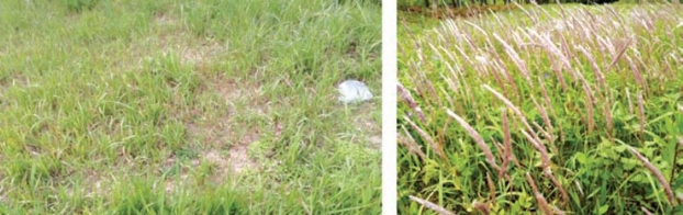 白茅(图3-14),禾本科多年生杂草,植株低矮,但地下根系发达,入土极深,一般内吸传导的除草剂很难根除,密集生长导致土壤板结,导致其他植物死亡,大面积发生后,在六七月花期内其可比肩观赏草。冬季枯黄,开春即发,特性最符合“一岁一枯荣,春风吹又生”的描述。