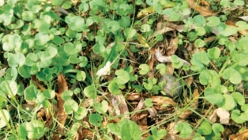 马蹄金(图3-16)茎叶柔软、低矮、匍匐、致密,曾经有过很风光的过去,一直被设计使用成纯草坪,但不耐践踏、病虫害多等原因致使此设计难有效果而迅速被弃用。目前无论是百慕大还是高羊茅草坪,混杂其内的马蹄金往往生长旺盛,并且能迅速成坪,极难根除,已成公认的恶性杂草。
