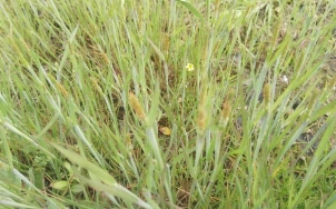 看麦娘(图3-25),麦田杂草,在绿地中常见,与其相近植物还有日本看麦娘,两者区别在于后者的花药白色。