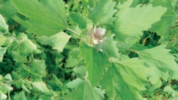 藜(图3-62),俗称“灰菜”,嫩叶可食,叶片正反有白色粉末状。